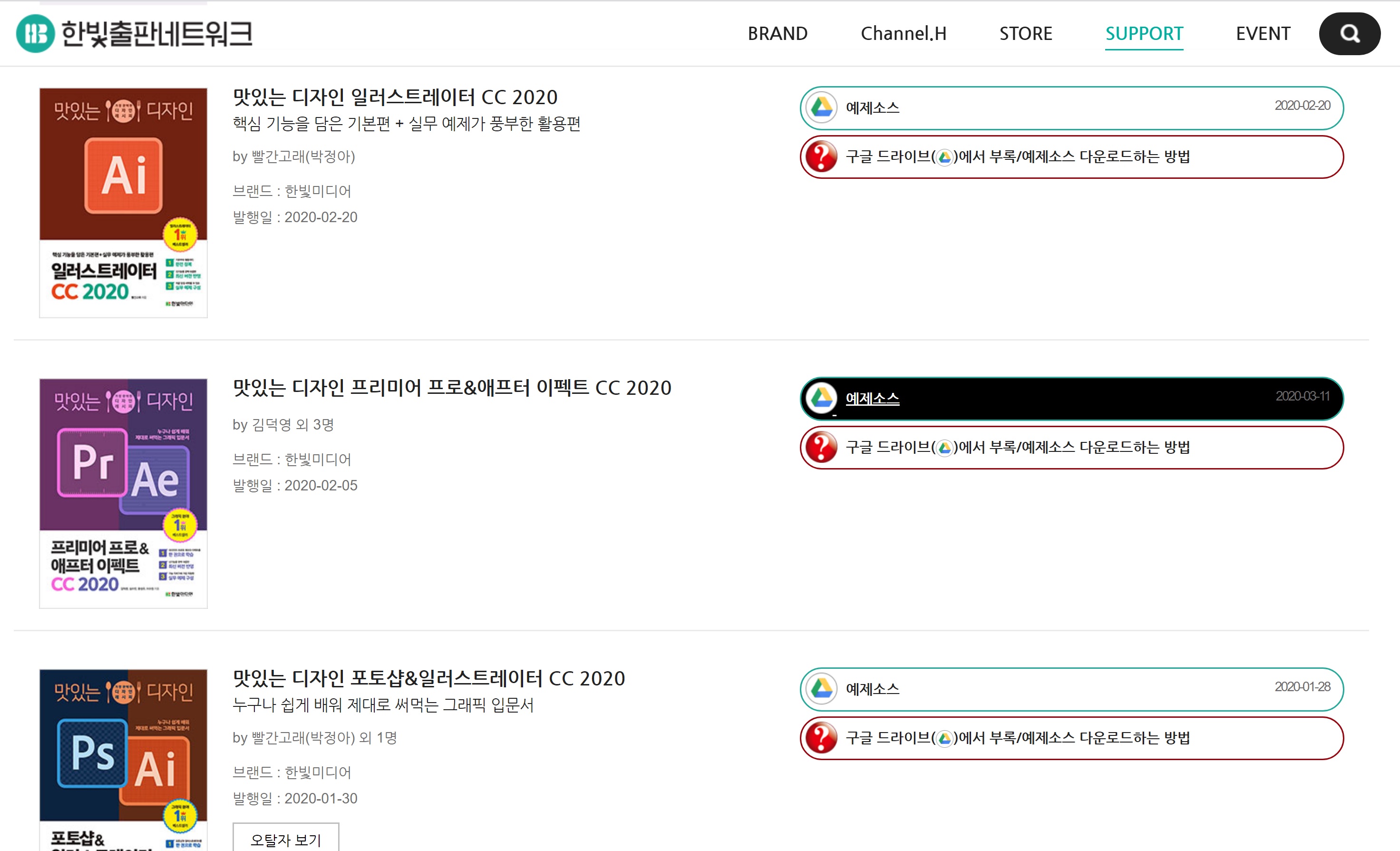 그리고 한빛출판네트워크 홈페이지(www.hanbit.co.kr)에 접속해서 쉽게 예제와 완성 파일들을 다운로드 받을 수 있다. (빠른 링크도 포함하고 있으므로 찾지 않고 바로 다운로드 페이지로 접속 가능하다)