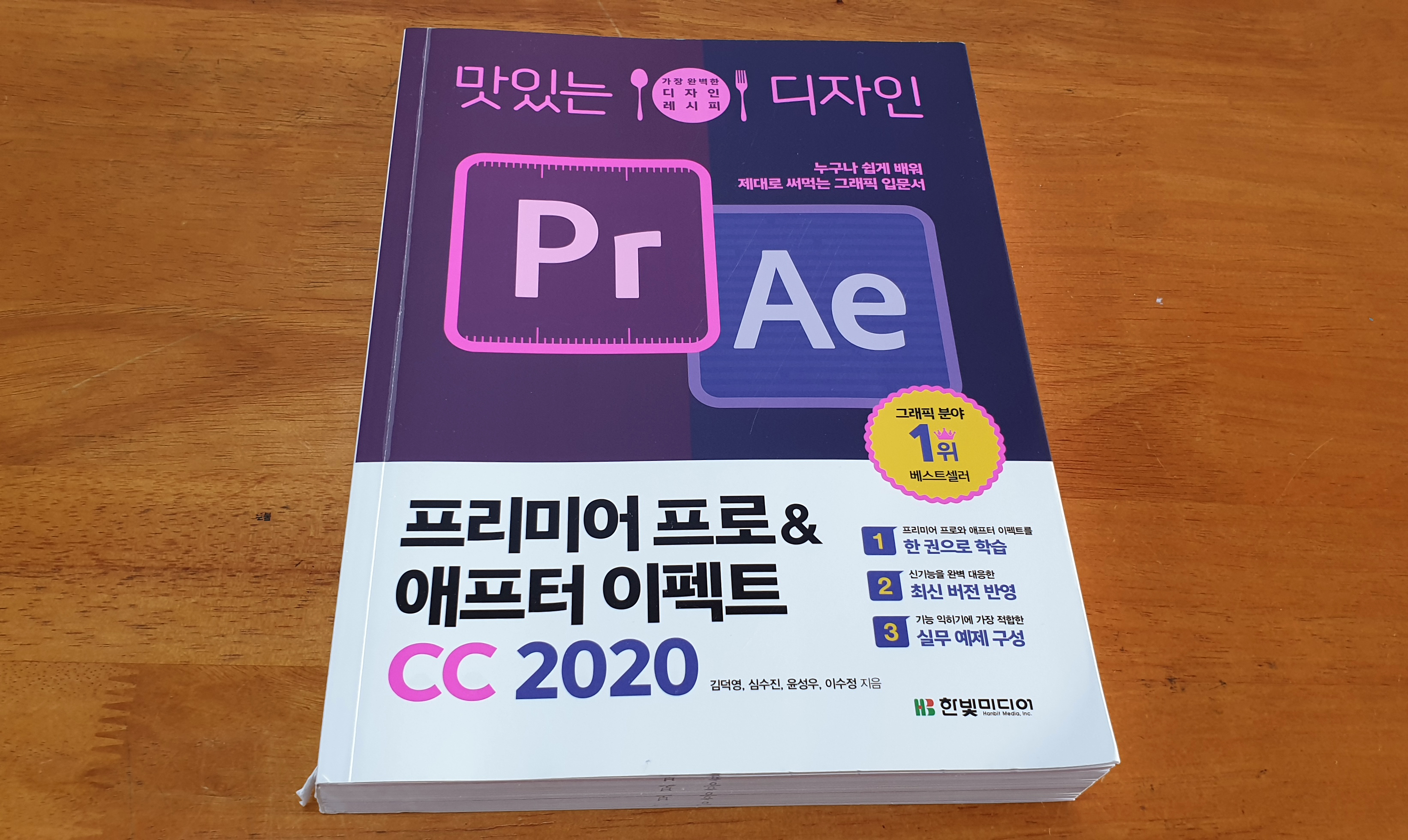 동영상 제작을 해야하는 일이 있어서 관련 도서들을 찾아보던 중에 이 책 <맛있는 디자인 프리미어 프로&애프터 이펙트 CC 2020>를 선택하게 되었다. 컷 편집부터 간단한 합성까지 배워야 했던 차에 프리미어와 애프터 이펙트를 한 권으로 쉽게 설명되어 있는 이 책은 매우 안성맞춤이었다. 솔직히 보통 두께의 한 권으로 두 프로그램을 얼마나 잘 배울 수 있을지 의문이 들기도 했지만 책으로 공부해 가면서 그런 생각이 사라졌다.